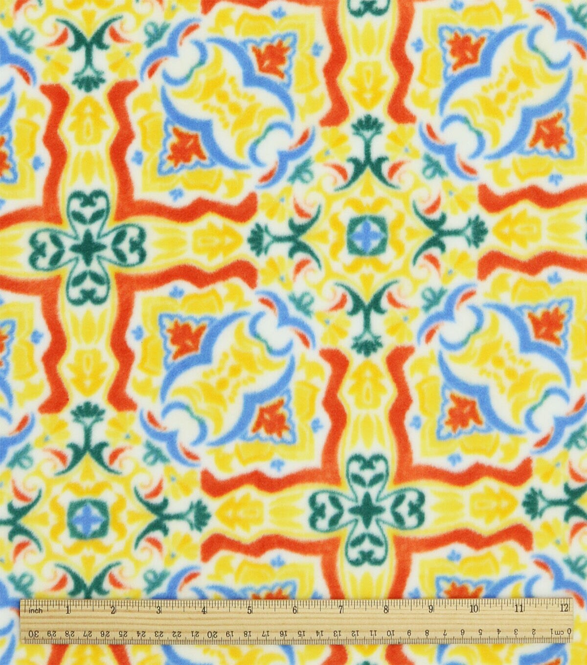 Yellow & Blue Watercolor Tile Luxe Fleece Fabric