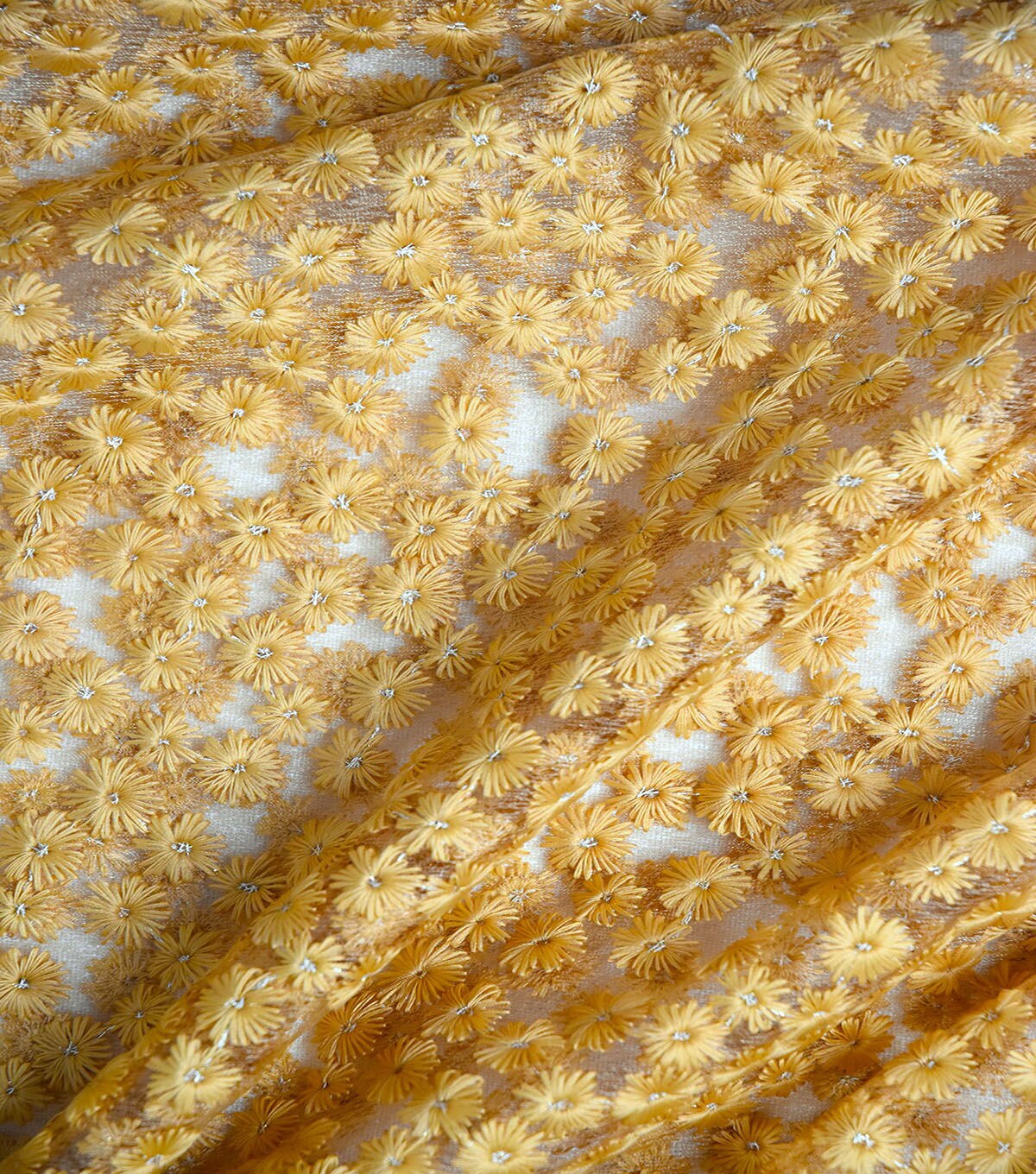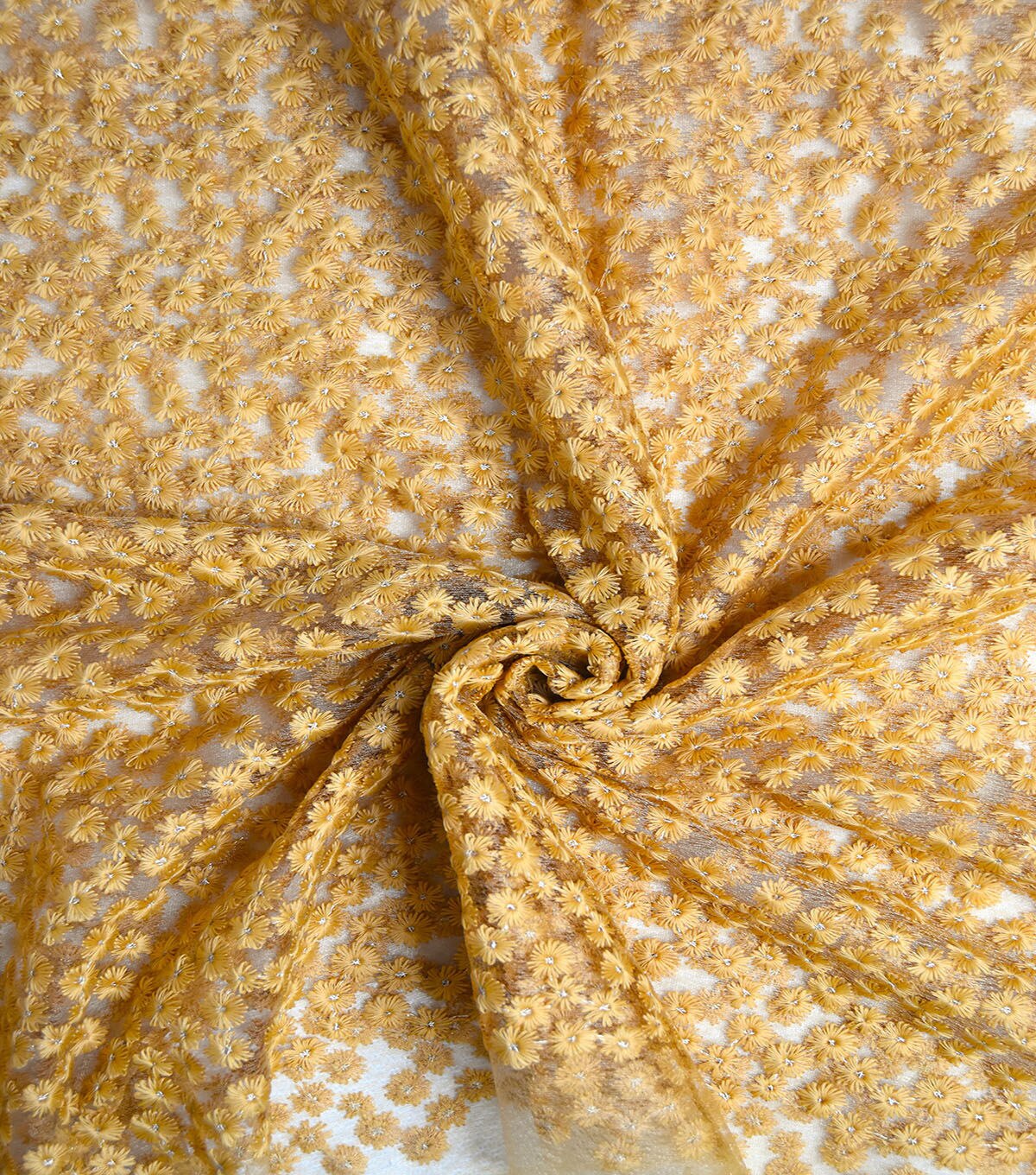 • Yellow Floral Embroidered Lace Fabric By Sew Sweet