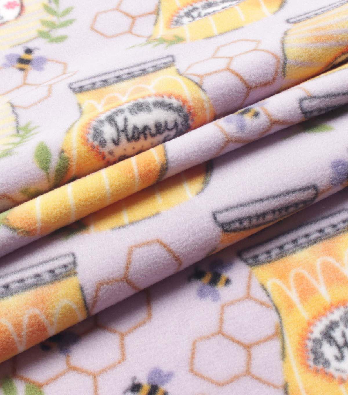 Experience the Ultimate Comfort with Yellow Honey Jars With Bees Anti Pill Plush Fleece Fabric