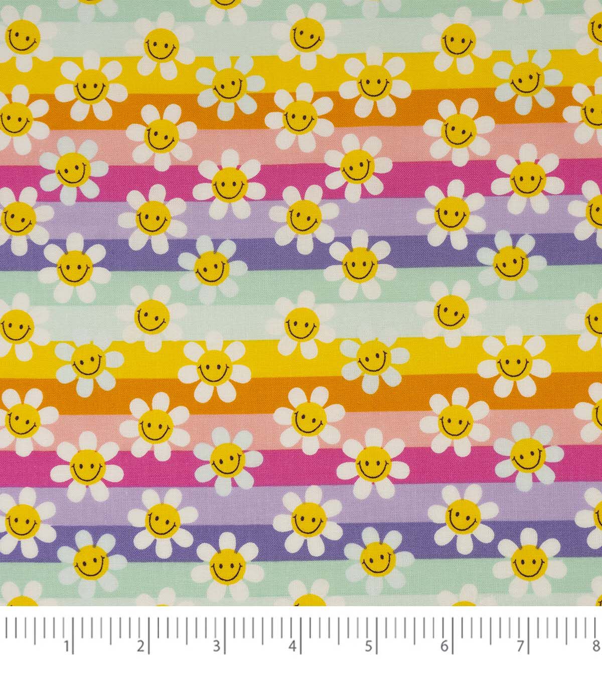 Bring a Touch of Modern Elegance to Your Next Project with Yellow Modern Daisies on Stripes Quilt Cotton Fabric by Keepsake Calico
