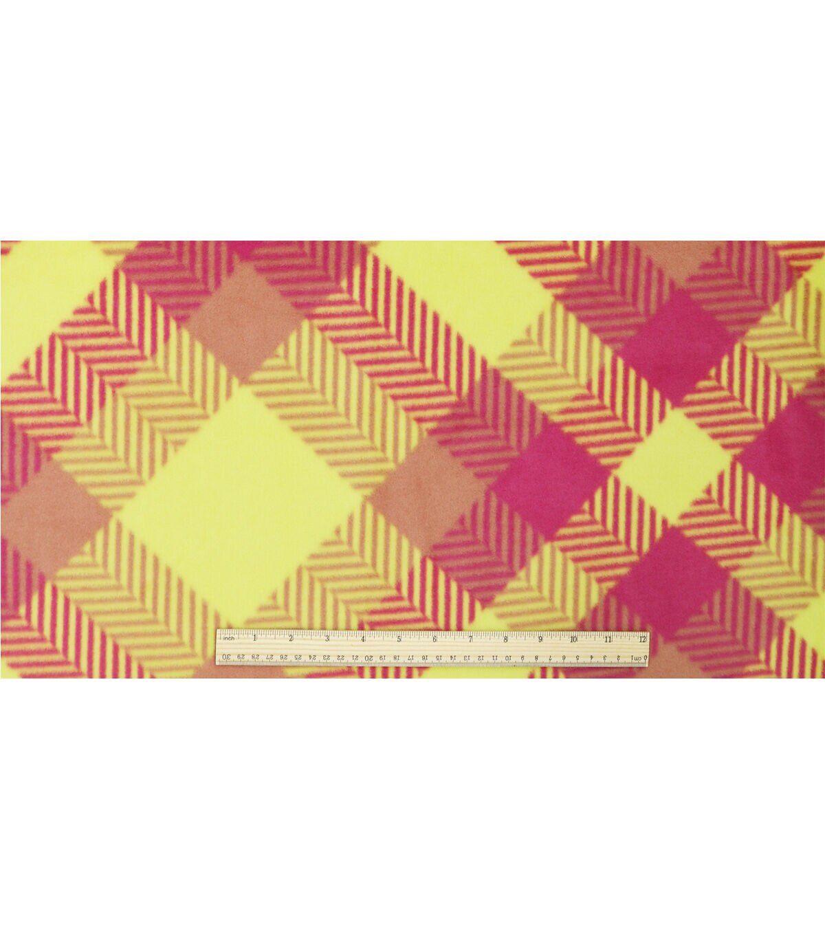 Yellow & Pink Diagonal Plaid Anti Pill Fleece Fabric
