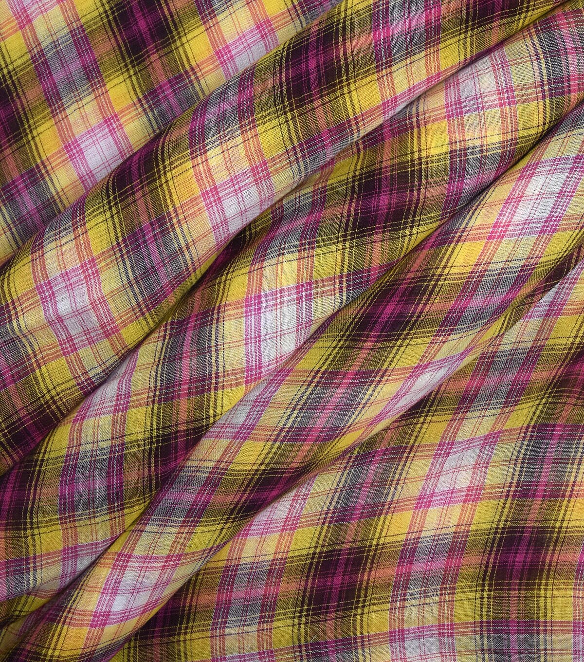 • Yellow Sheer Gauze Plaid Cotton Shirting Fabric