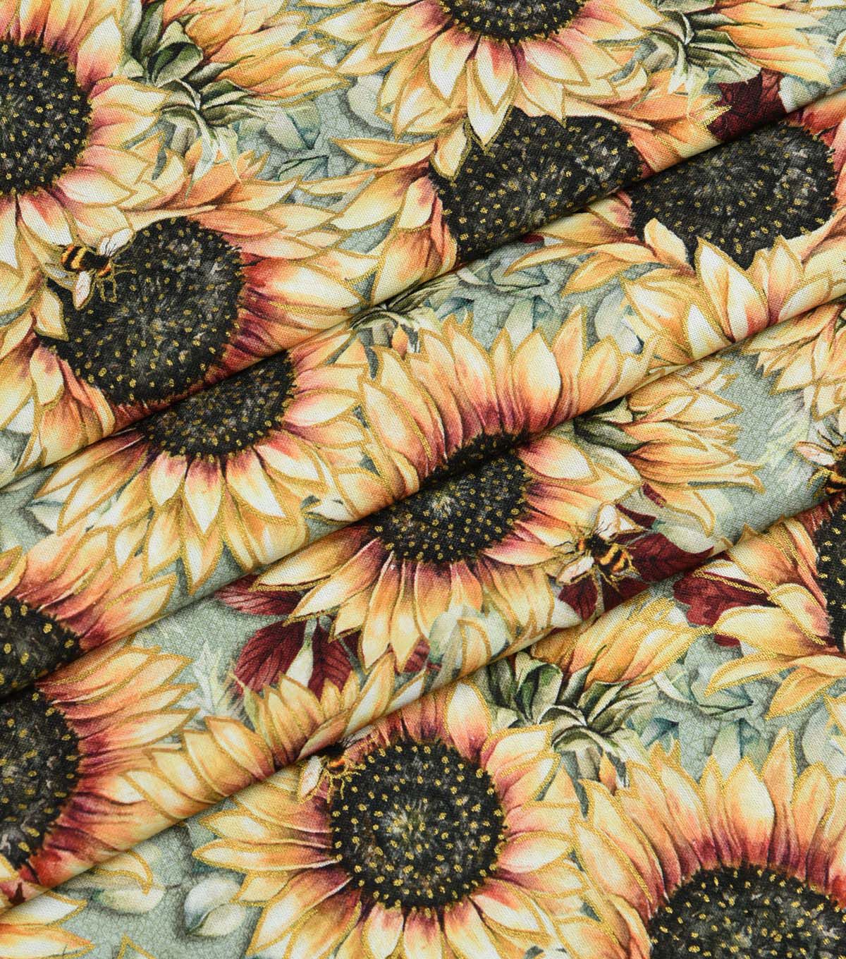 • Yellow Sunflowers & Bees Premium Cotton Fabric