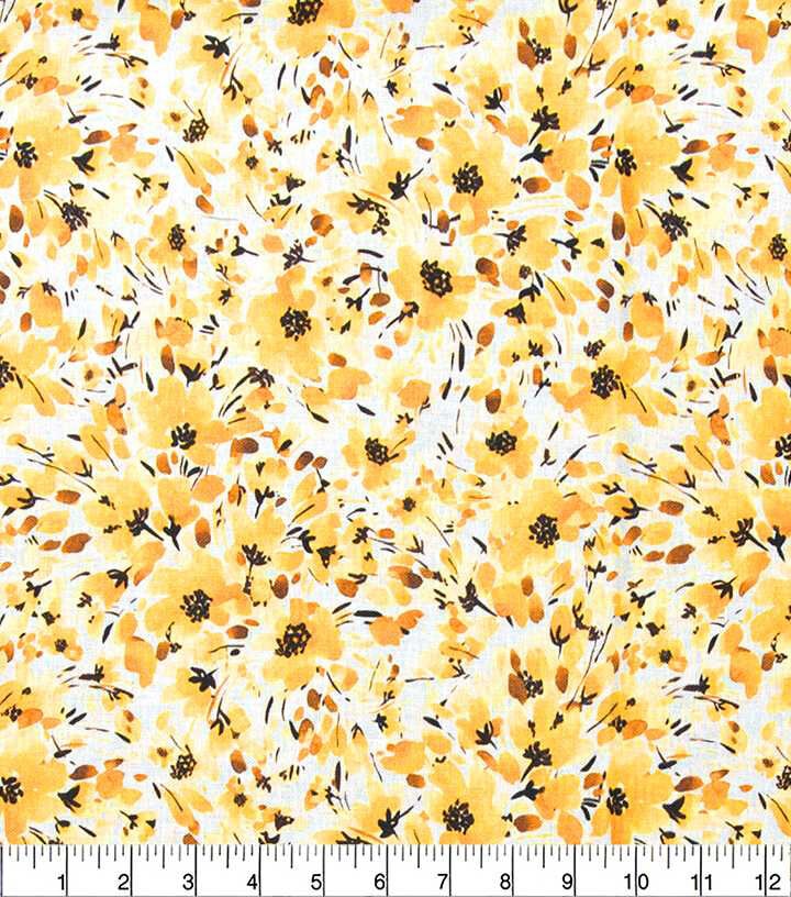 • Yellow Watercolor Flower Vines Quilt Cotton Fabric by Keepsake Calico