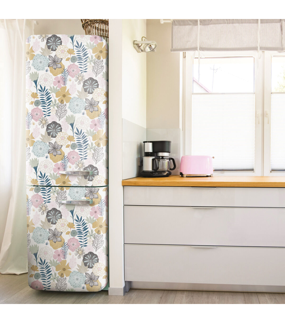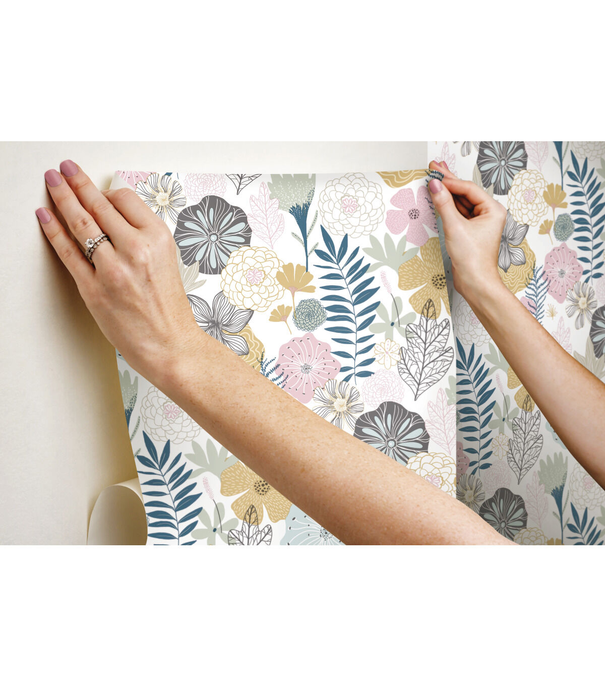 Walls become a backyard garden with Pink Perennial Blooms Peel and Stick Wallpaper by RoomMates. This pattern, inspired by the natural world, gives any surface a dimensional look with little effort. Add architectural details to any space for an accent wall, full room makeover, furniture DIY, and more. Simply cut the peel and stick wallpaper to size, remove the backing, and stick to any smooth, clean surface. Pull off the wall in full sheets when it's time to redecorate: no sticky residue or damage left behind. Bring the natural world into your home with peel and stick wallpaper from RoomMates.