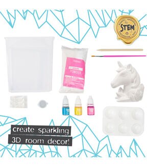 - Whether you’re looking for an easy-peasy homeschool science project or a fun weekend activity, this science kit is perfect for any learner ages 12 and up! Kit Includes: 1 Unicorn Figurine (4 in. x 2.2 in. x 4.875 in.), 1 Bag of Alum Powder (6 oz), 1 Crystal-Growing Container (5.53 in. x 3.83 in. x 5.5 in.), 3 Coloring Dyes (1 Yellow, 1 Pink, 1 Blue), 1 Iridescent Glitter Packet (1 g), 1 Acrylic Paint Pot (Metallic) 3 mL, 1 Mixing Stick, 1 Paintbrush, 1 Paint Palette, Easy-to-Follow Instructions