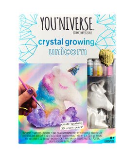 - With a bit of chemistry and a lot of creativity, you can grow crystals on a unicorn and design sparkling room décor! The YOUniverse Crystal-Growing Unicorn set includes everything you need to grow crystals on a unicorn figurine, including a ready-to-go crystal-growing mixture and a container that lets you watch the crystals grow!
