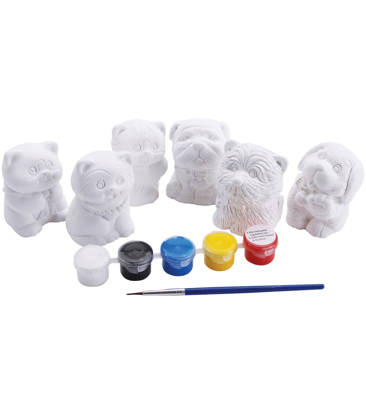 Everything anyone needs to complete these adorable figures. This package contains six plaster figures (approximately 2x2x2in); five 0.1oz/3ml paint pots; and a brush. Contents Available in a variety of themed sets: each sold separately. Recommended for children ages 4 and up. WARNING: CHOKING HAZARD-Small Parts. Not for children under 3 years.