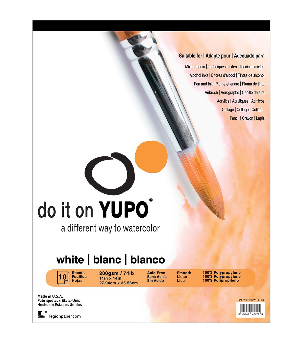 Take coloring to a whole new level with the Yupo Paper Pack Of 10 11'' x 14'' Sheets. Made from 100% polypropylene, these 75 lbs sheets are durable, versatile and a great alternative to normal watercolor papers. Their smooth surface and stain-resistant property allows seamless application of watercolors without botching, letting you fabricate rich and intense paintings. You can also carry these painting sheets along during travels since they remain as is and don't tear easily.