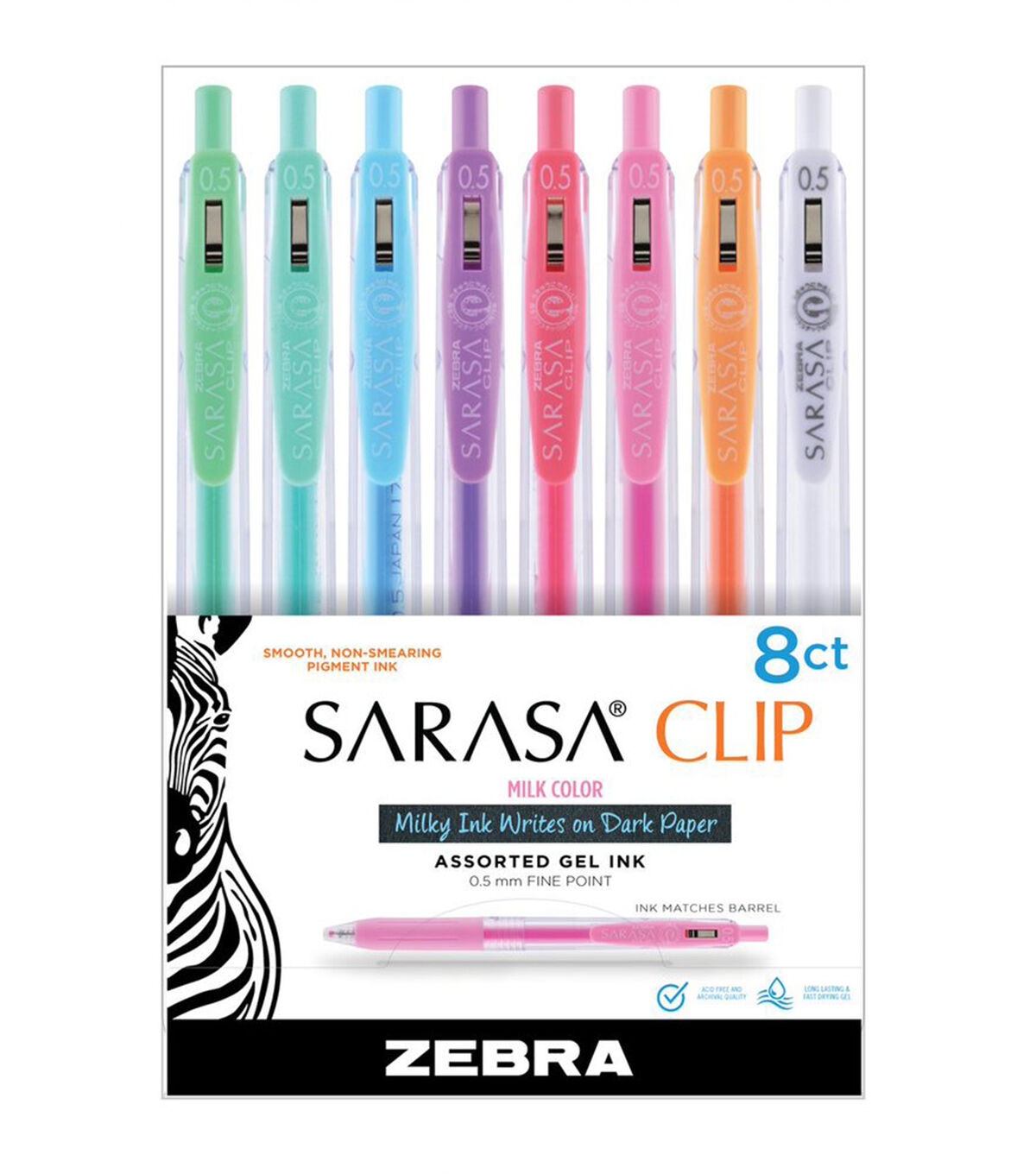 Zebra Sarasa Milk Series features softly colored, opaque inks that show up well on light and dark colored papers. They can even be used on glossy photos! Like all Sarasa Clip colors, Sarasa Milk features water-based pigment ink that is acid free and water resistant for a long-lasting impression. A great pen for everyday writing and for scrapbookers and artists!