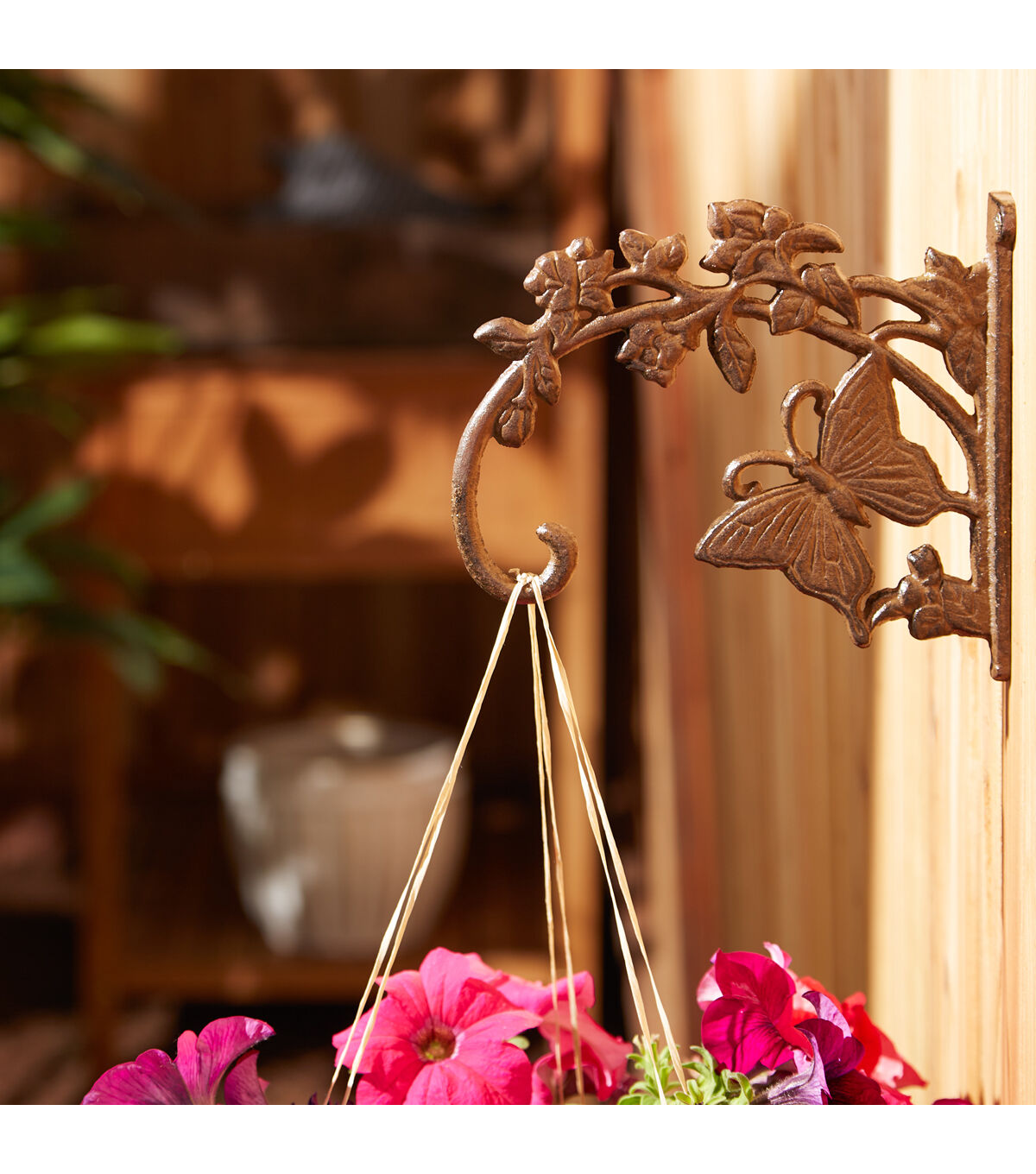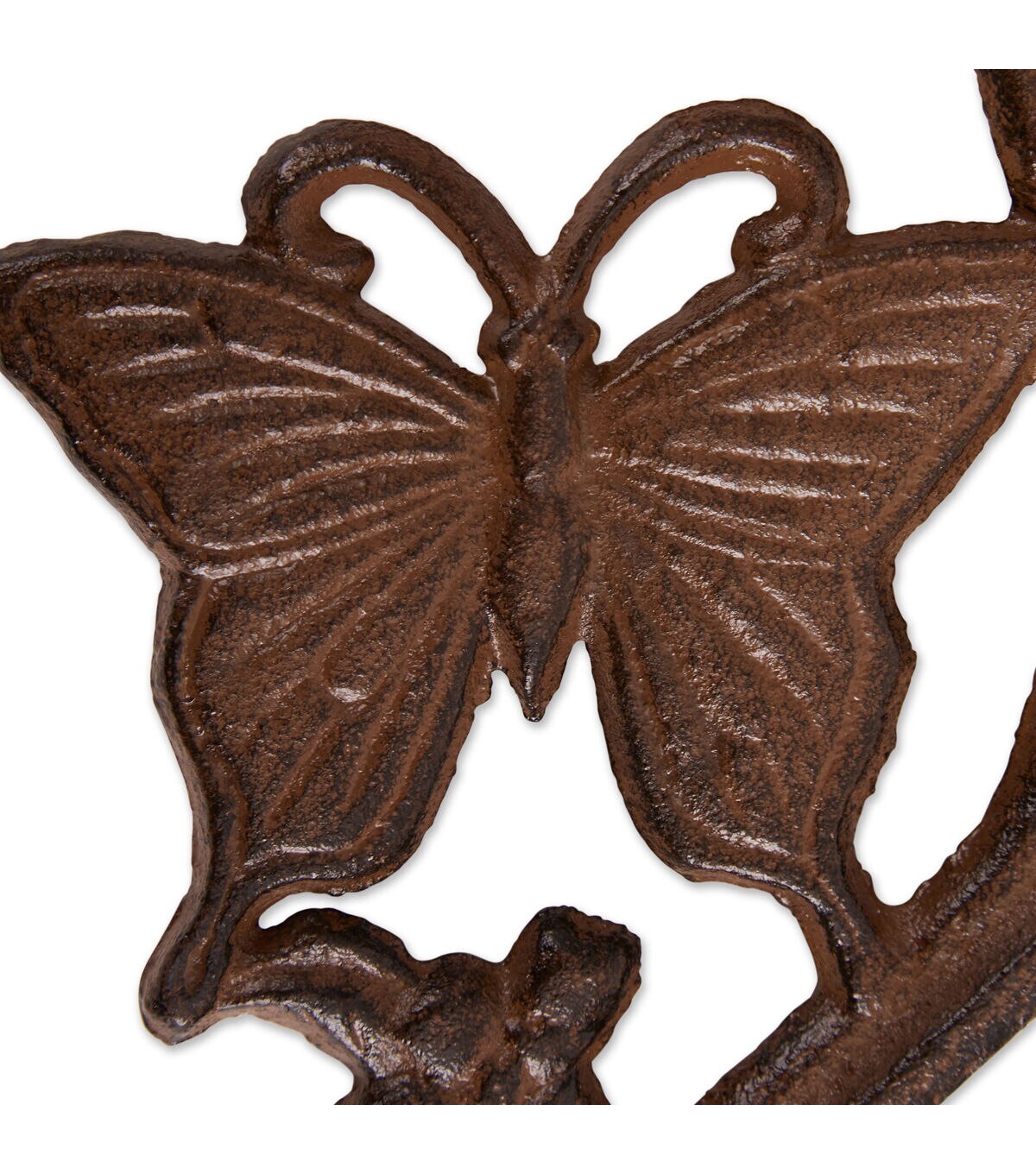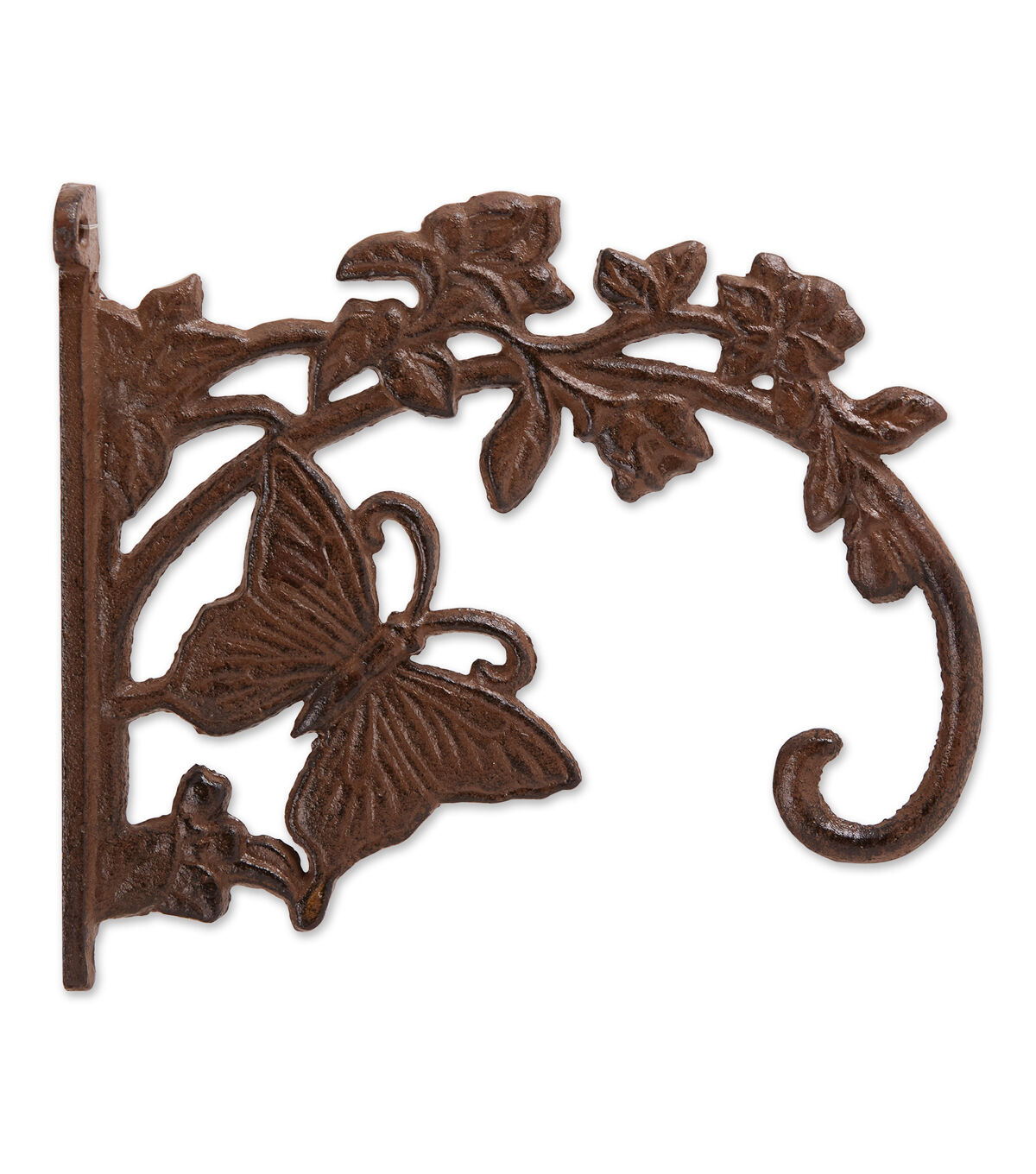 Cast Iron planter bracket 1.3 lbs. and measures 7.75x1x6.75 inches. Decorative butterfly planter bracket is made from durable cast iron and perfect for hanging baskets in your yard and garden. Spruce up your garden shed, garage, mud porch with this durable planter bracket, bring flowers to more of your space with hanging baskets. To clean, wipe with a damp cloth as needed. Beautifully detailed and cast from iron, it will be your favorite outdoor accent for years to come.