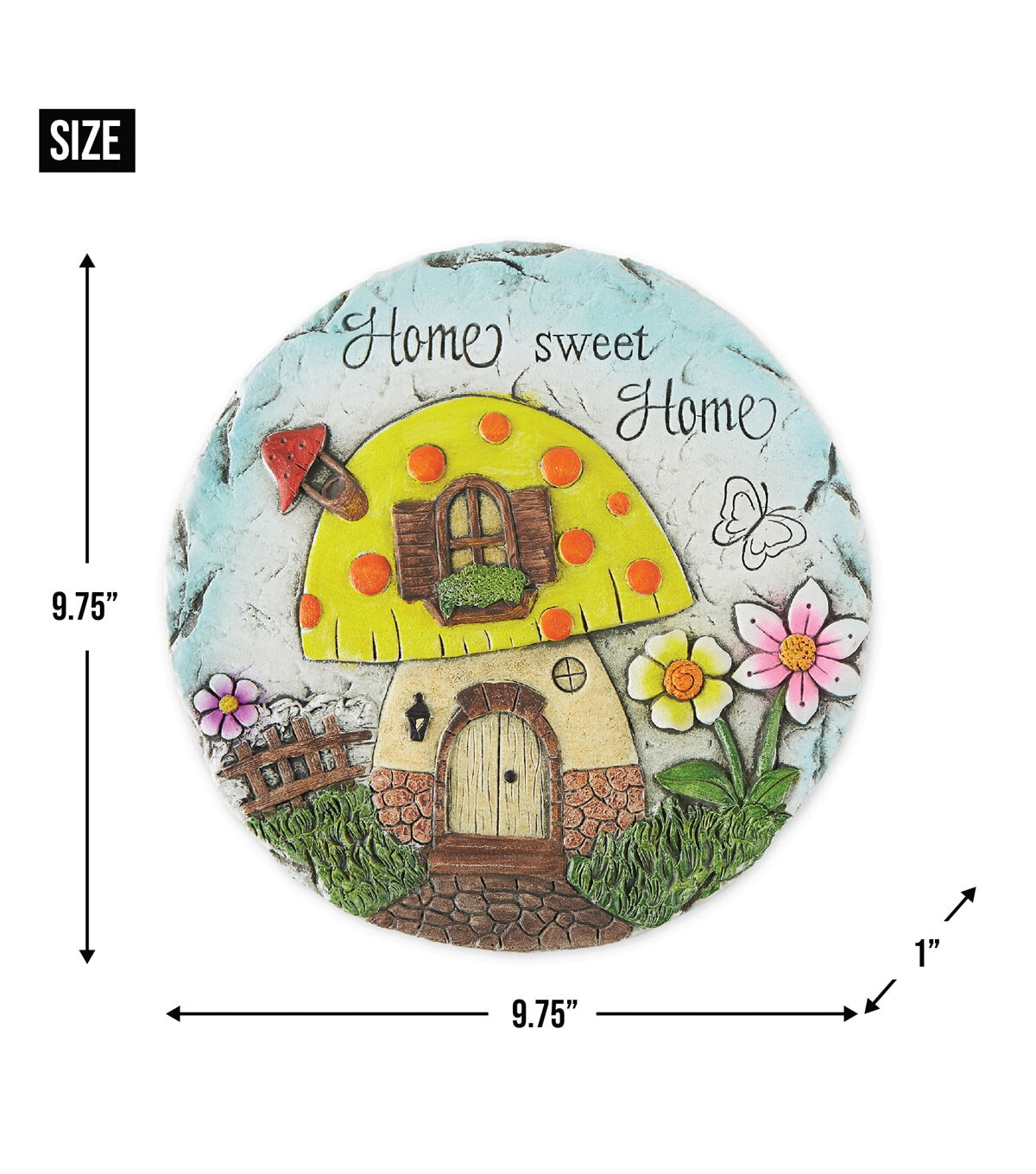 Spruce up your pathway or garden with this adorable stepping stone. Perfect for marking pathways or as accents in flower beds and vegetable gardens. Tthis garden accent will bring charm and appeal to any space. Simply place in the desired location to add a whimsicall touch to the outdoors! This stepping stone measures 9.75" x 9.75" x 1" and is made of cement to create a durable and decorative garden pathway. This stepping stone is weather resistant and easy to care for. To clean your stepping stone wipe with a soft damp cloth.