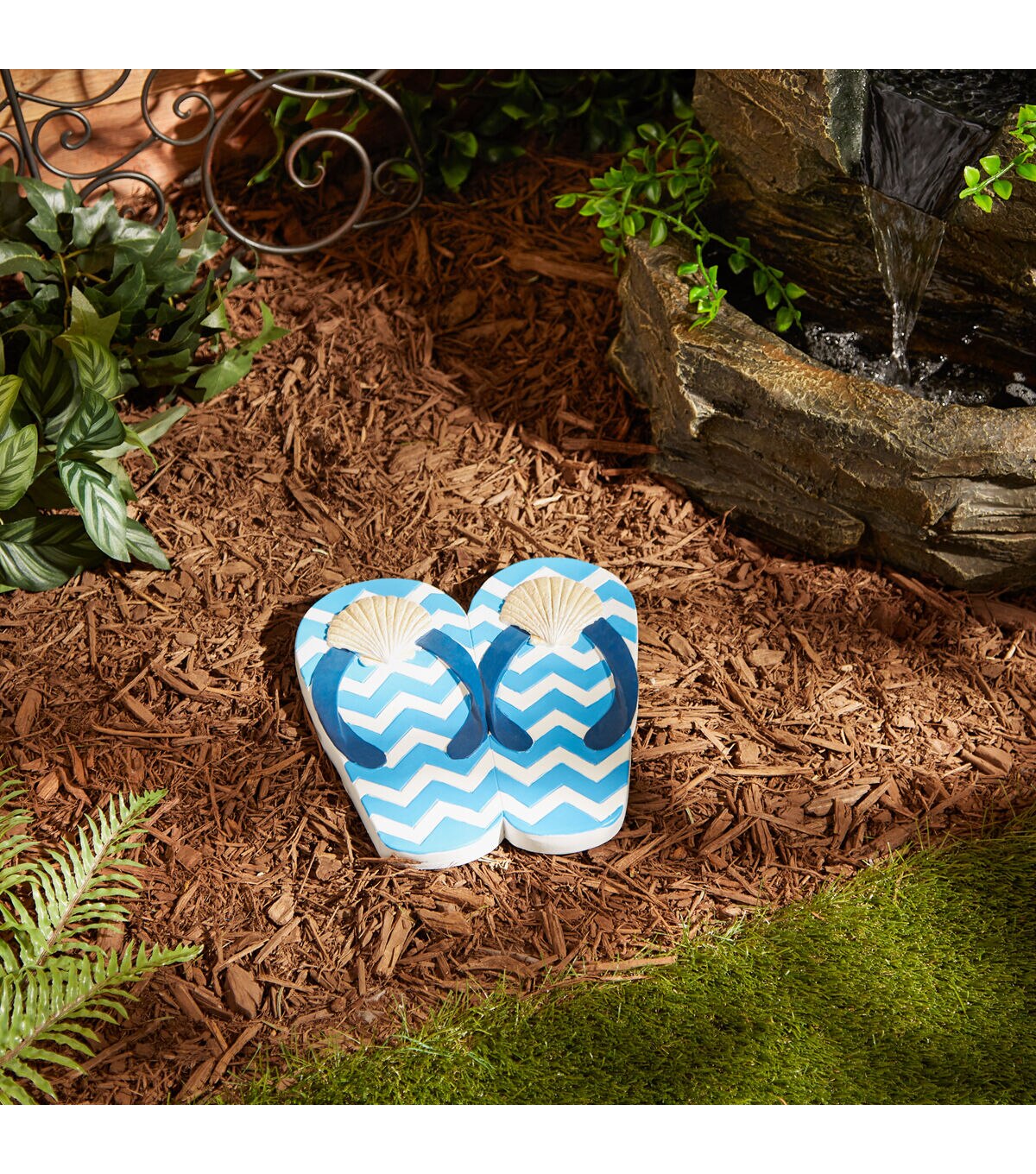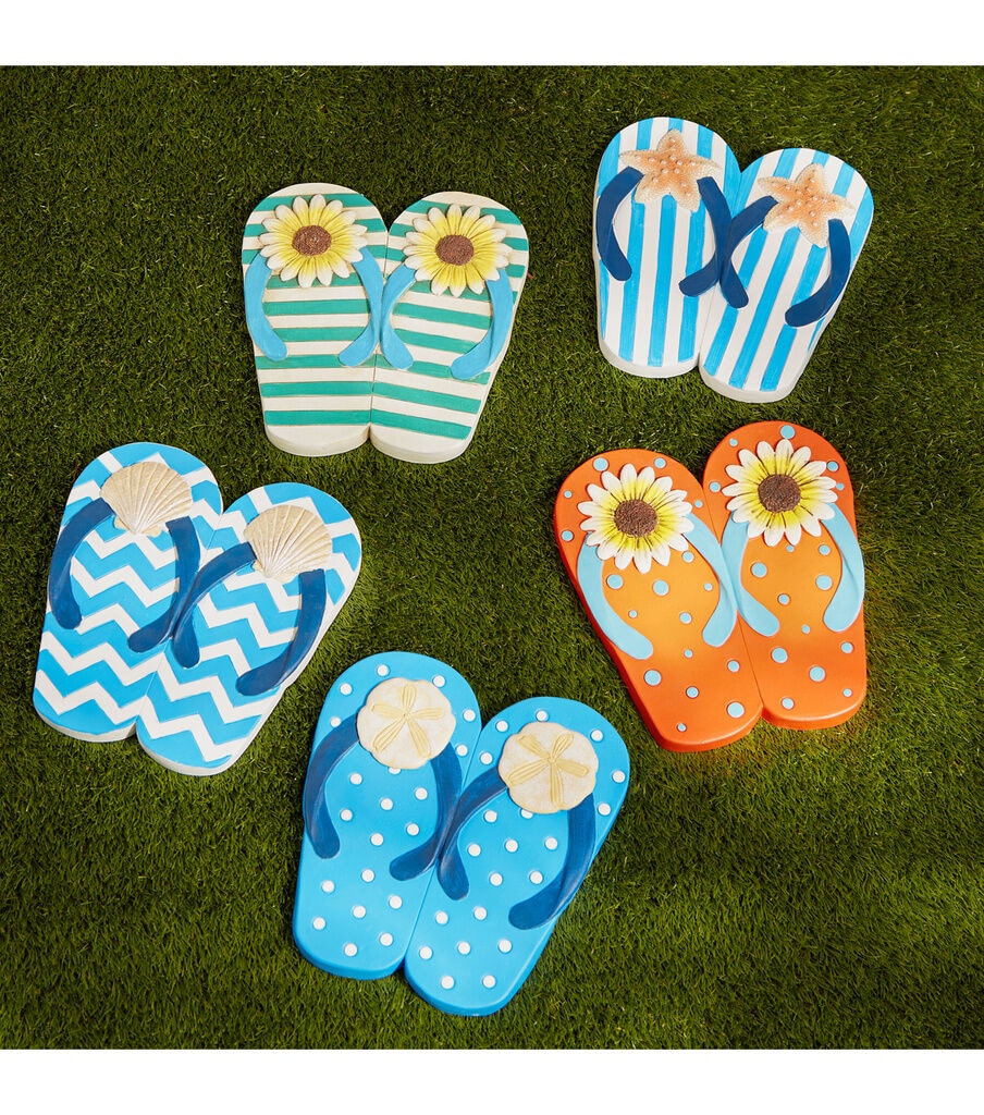 Spruce up your pathway or garden with this charming Beach Flip Flops stepping stone. Perfect for marking pathways or as accents in flower beds and vegetable gardens. Tthis garden accent will bring charm and appeal to any space. Simply place in the desired location to add a whimsicall touch to the outdoors! This stepping stone measures 9" x 9.5" x1" and is made of cement to create a durable and decorative garden pathway. This stepping stone is weather resistant and easy to care for. To clean your stepping stone wipe with a soft damp cloth.