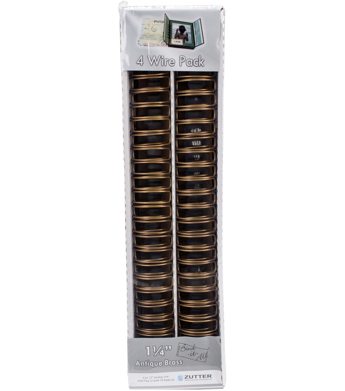 Complete your scrapbooking projects with the Zutter Bind-It-All OWire-Antique Brass. This pack contains four, acid-free, 1.25 x 12-inch binding wires, designed for use with the Zutter Bind-It-All. They sport an antique brass shade that’s great for your vintage projects. Available in a variety of colors and diameter sizes, each sold separately.